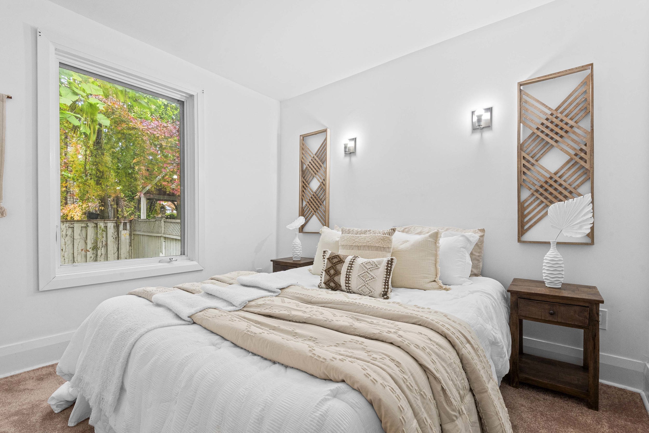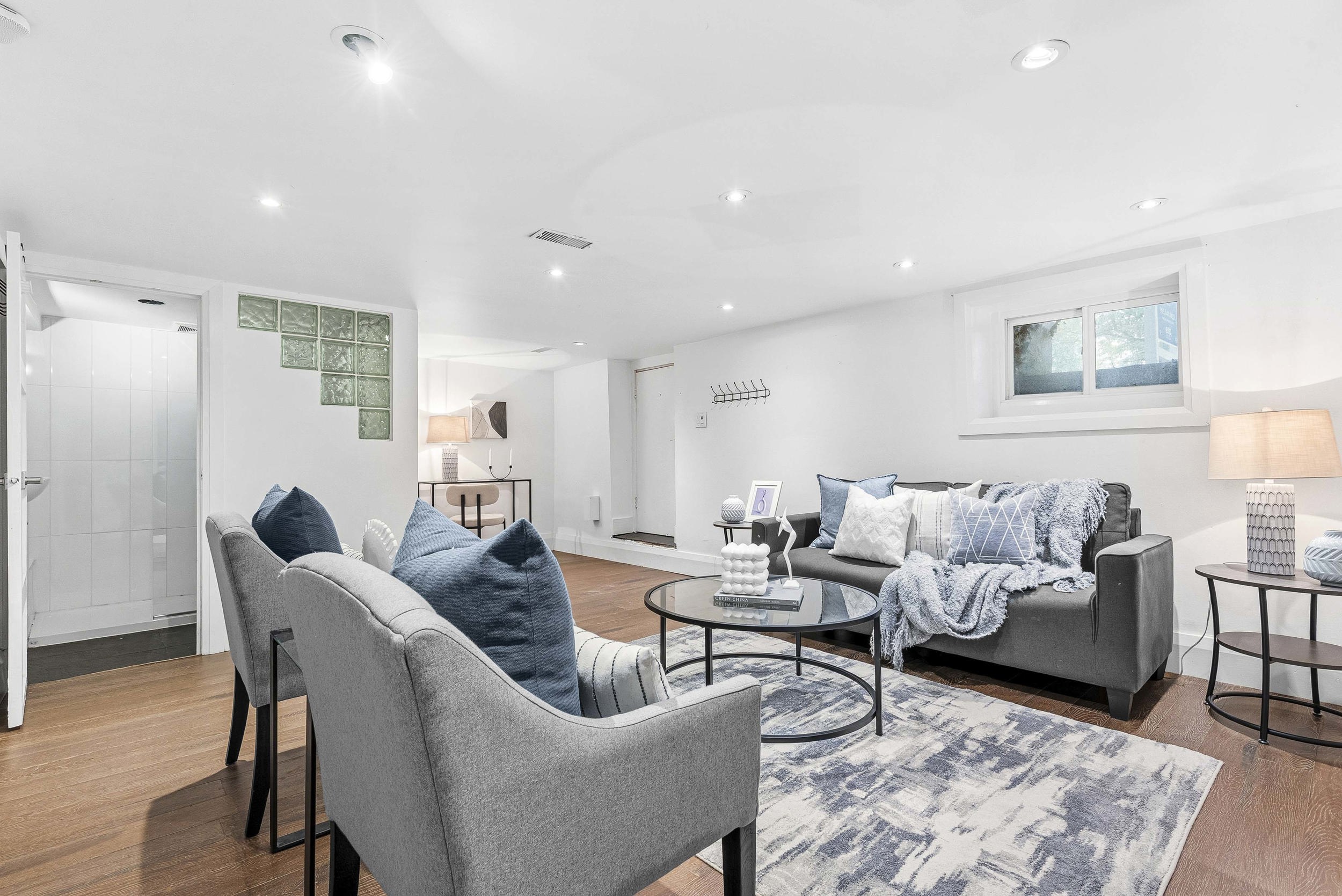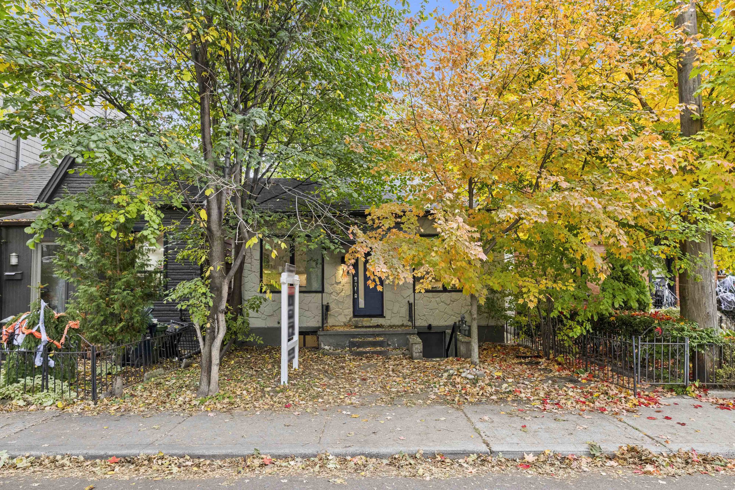Framed by mature maples and a charming stone façade, this inviting 2-bed, 2-bath bungalow welcomes you with a crisp blue front door, black-trim windows and a classic covered stoop—perfect for morning coffee under the trees. The low-maintenance front yard and wrought-iron accents add character and curb appeal, while the separate lower entrance offers practical versatility. Best of all, the setting is unbeatable: our favourite part of this neighbourhood is the walkability. Tucked on a quiet, leafy street yet centrally located in Leslieville, you’re steps to boutiques, cafés, parks, transit and everything that makes the East End beloved—no car required. Inside, a welcoming foyer opens to airy, vaulted ceilings with exposed beams and oversized windows across an open-concept main floor finished in warm wood. The crisp white kitchen features Shaker cabinetry, stone counters, a gas range and stainless steel appliances, flowing to a sunlit dining area and an inviting living room—ideal for entertaining. Tucked at the rear, the serene primary bedroom overlooks the fenced yard and features excellent closet space and new carpet, while the bright second bedroom is perfect for guests, a nursery or a home office. A refreshed main-floor bath with sleek vanity and glass walk-in shower adds spa-like convenience. Downstairs, a bright, open rec room with pot lights and wood floors offers flexible space for movie nights, a play zone, a home gym or a quiet work nook, served by a second bath with a glass shower. The lower-level laundry is tucked away with full-size machines and extra storage, keeping day-to-day living streamlined. Additional perks include an owned hot water tank (HWT) for peace of mind. Outside, the private, fenced backyard enjoys a leafy canopy, a walk-out to a wood deck for easy BBQs, and a simple, low-maintenance footprint—ready for pets, play, or your own landscaping vision.