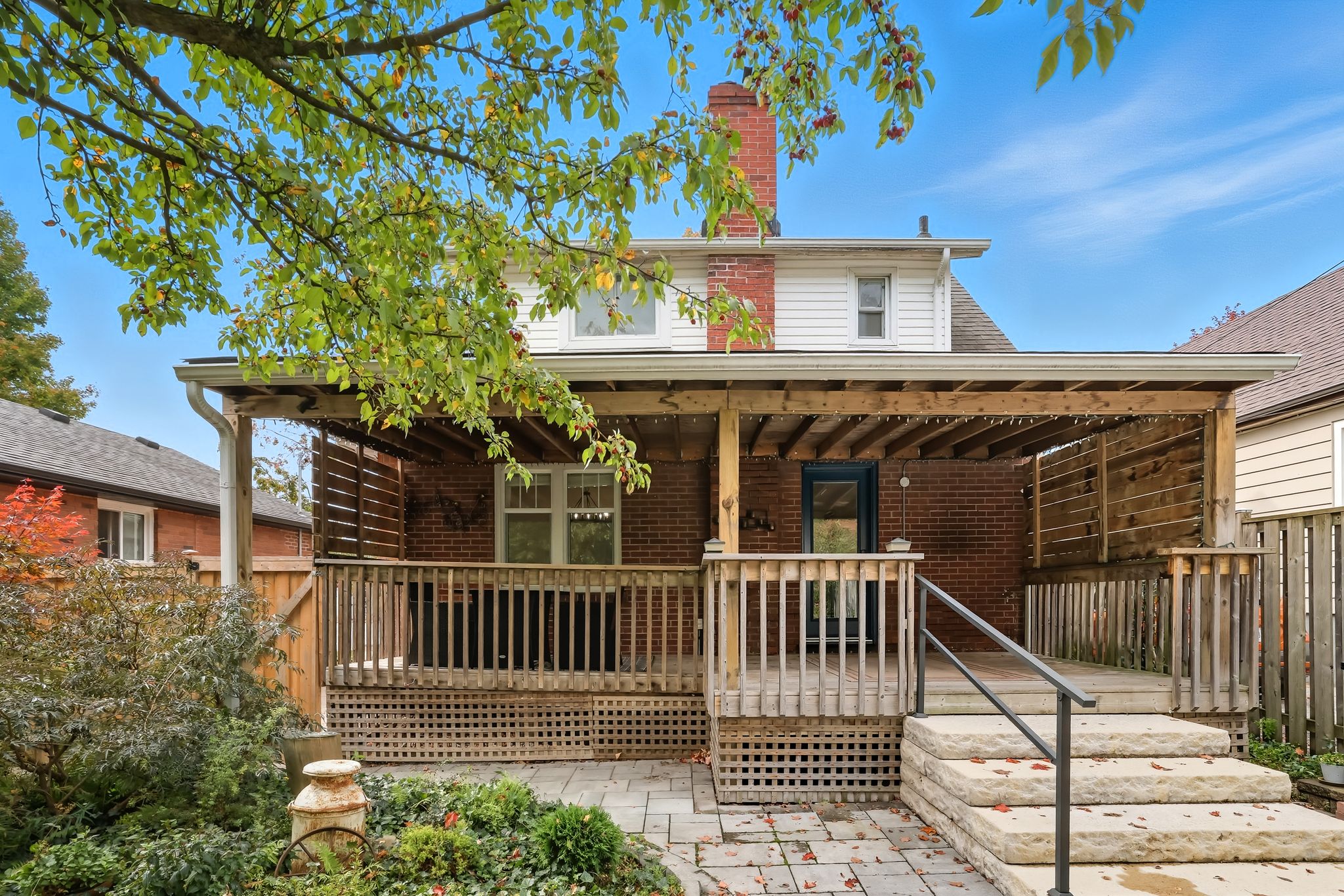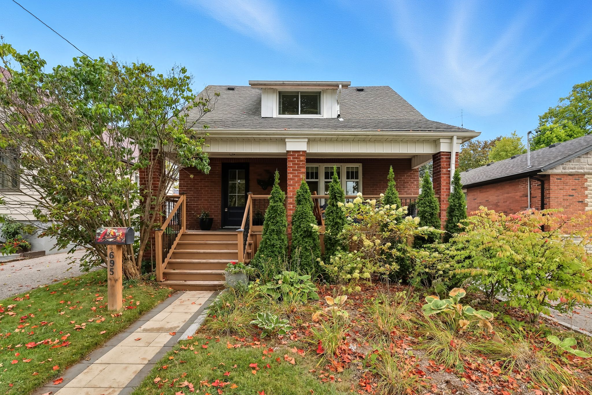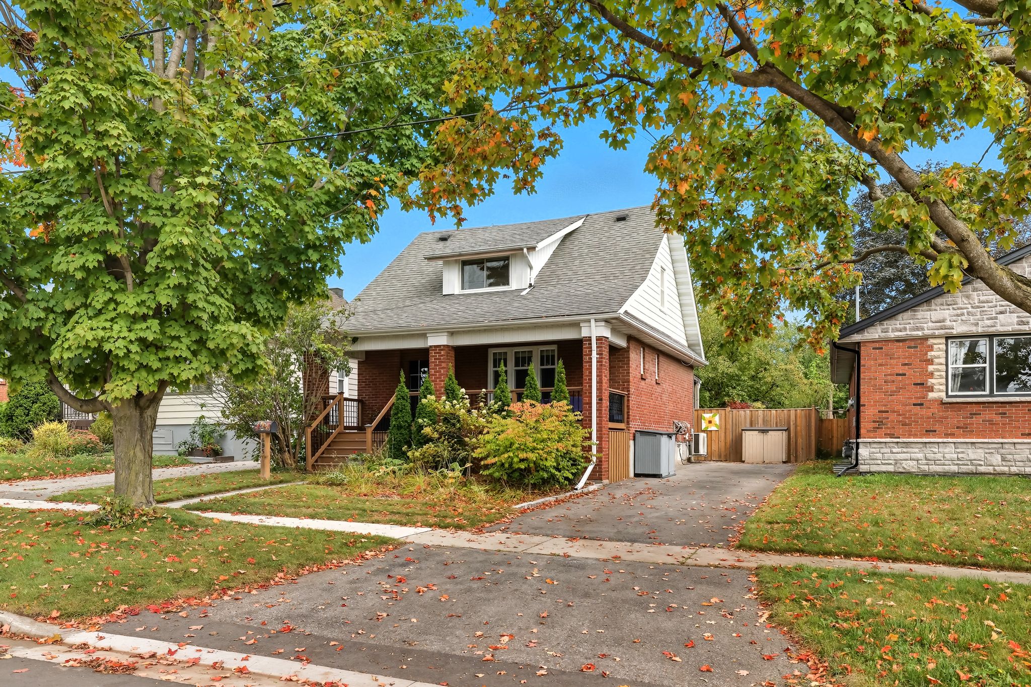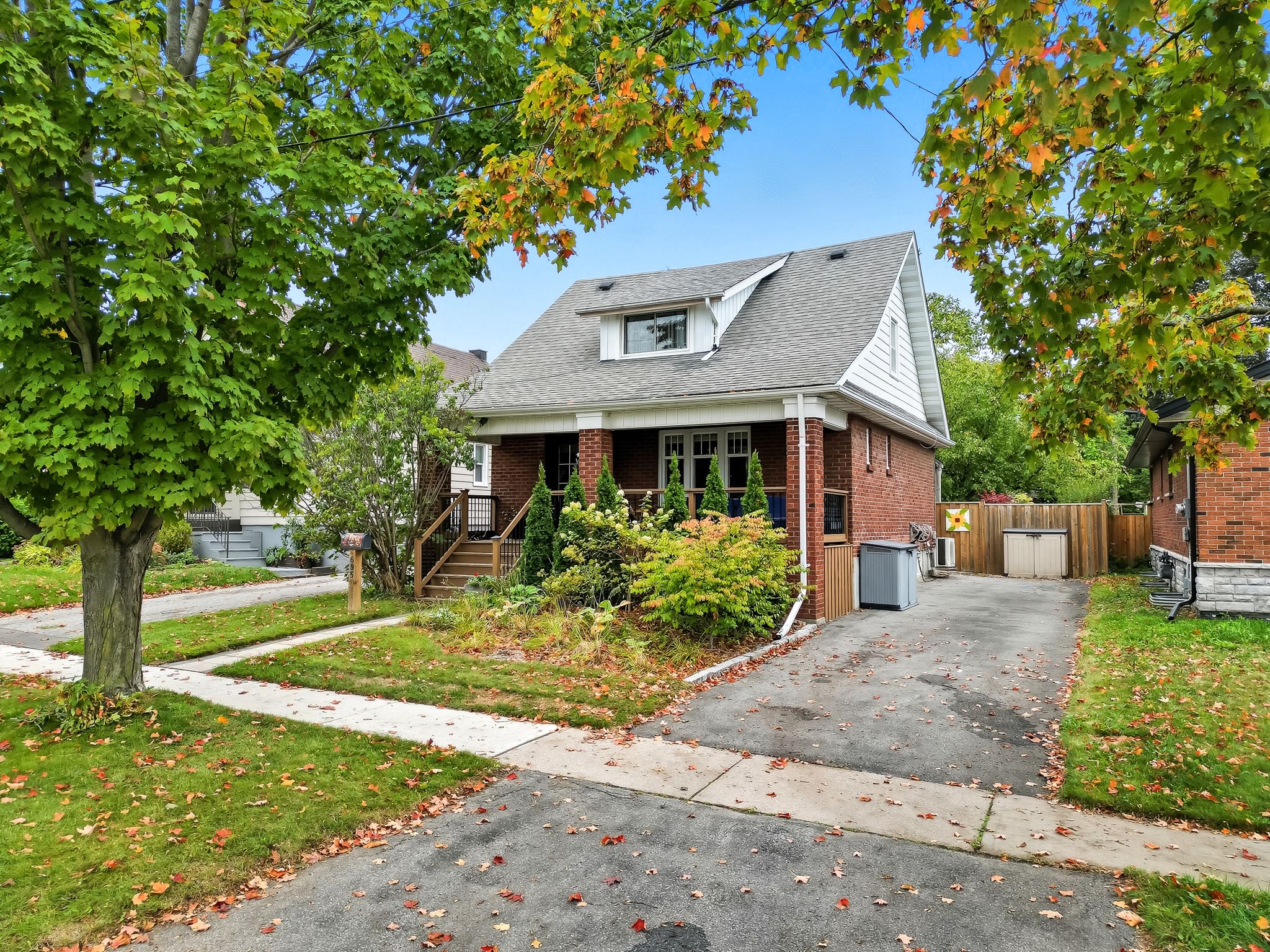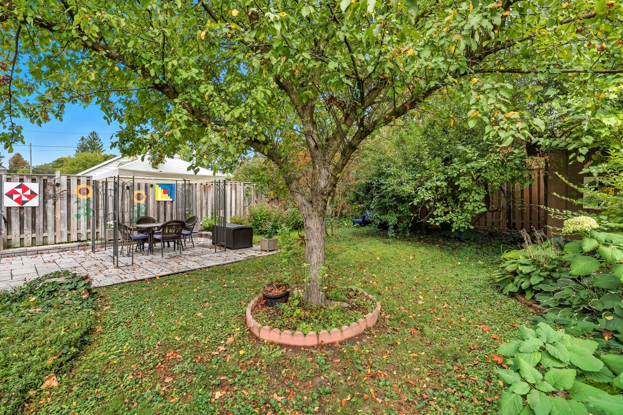 Set on a quiet, tree‑lined street, this brick home welcomes you with a tidy front garden, a stone walkway, & a large, sheltered front deck, perfect for morning coffee under the mature maples. From this elevated perch, you’ll enjoy a friendly, look‑out‑for‑each‑other community, with sidewalks that make it a genuinely good walking neighbourhood. In a great school district & surrounded by well‑kept homes, the setting feels calm, connected, & inviting from the moment you arrive. The main floor blends charm & function with a partial open-concept layout that’s perfect for entertaining. A bright Living Room with large windows & timeless trim flows to the elegant Dining Room, highlighted by a full built-in china cabinet. At the back, the updated gourmet Kitchen shines with high-end ‘23 appliances, quartz countertops, solid-wood cabinets, subway-tile backsplash, pot lights, & updated tile flooring, plus a convenient walkout to the covered deck—so cocktails can move effortlessly from prep to patio. Upstairs hosts 3 bright bedrooms & a full 4-pc bath, all with warm wood-style floors & generous windows. The bathroom blends cottage charm with modern updates: a Bathfitter tub/shower combo, fresh Moen fixtures & sink (‘23), & updated tile flooring (‘15). The versatile 3rd bedroom is a standout—complete with a built-in desk niche & a fun ladder leading to a cozy loft for reading, play, or extra storage. Thoughtful closets & shelving keep everything organized, making this level equal parts stylish & practical. Out back, a large, sheltered deck off the kitchen steps down to a stone patio & gazebo, wrapped by perennial beds, a flowering crabapple, & mature greenery—your own secret garden. The fully fenced yard is perfect for pets & play, with the patio & all gardens professionally installed by Michal Durham Landscaping. Practical updates elevate the exterior, too: gutter guards ‘25, all windows replaced in the early 2000s, plus both exterior doors updated in ‘24. Just move in & enjoy.