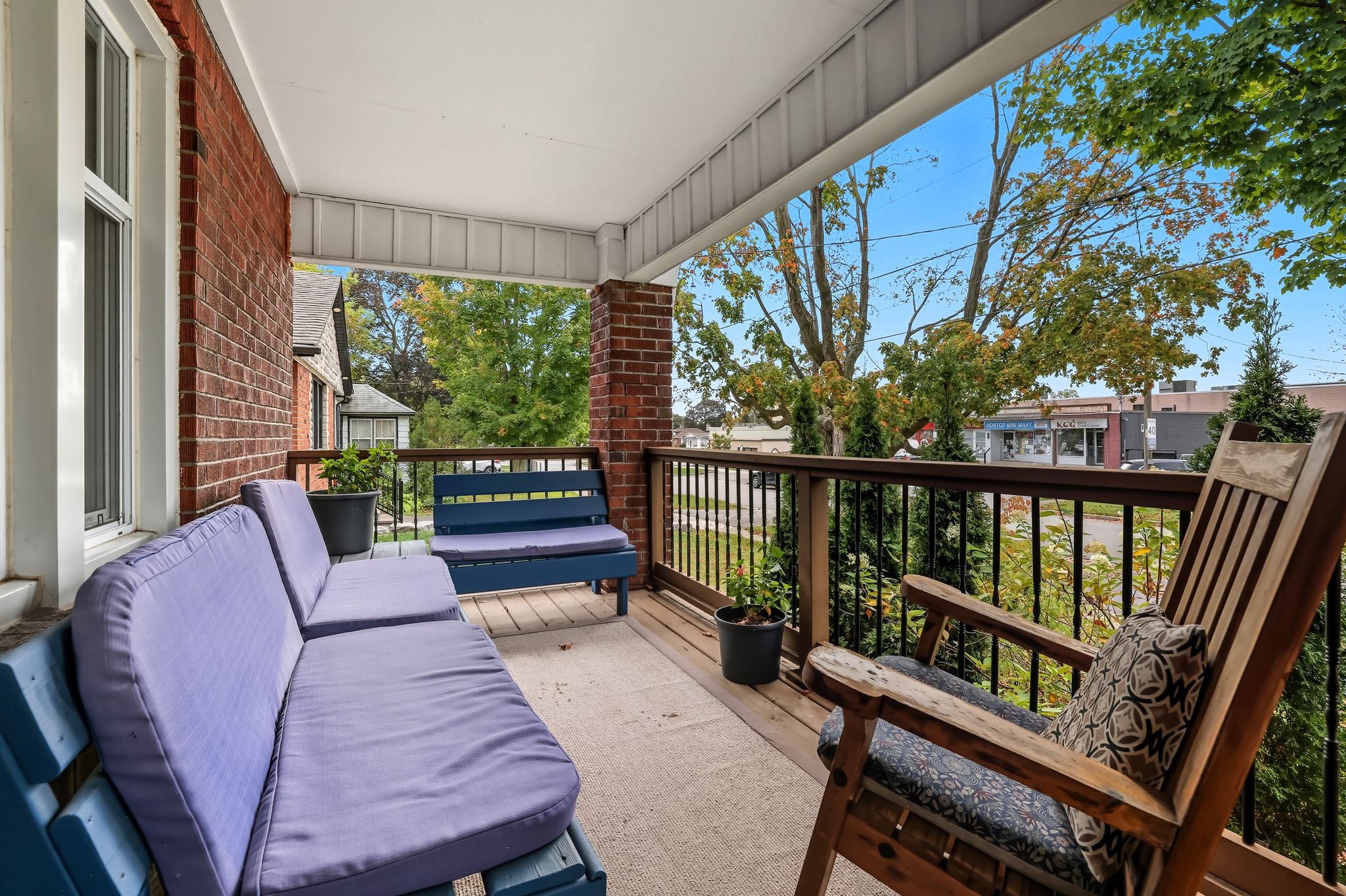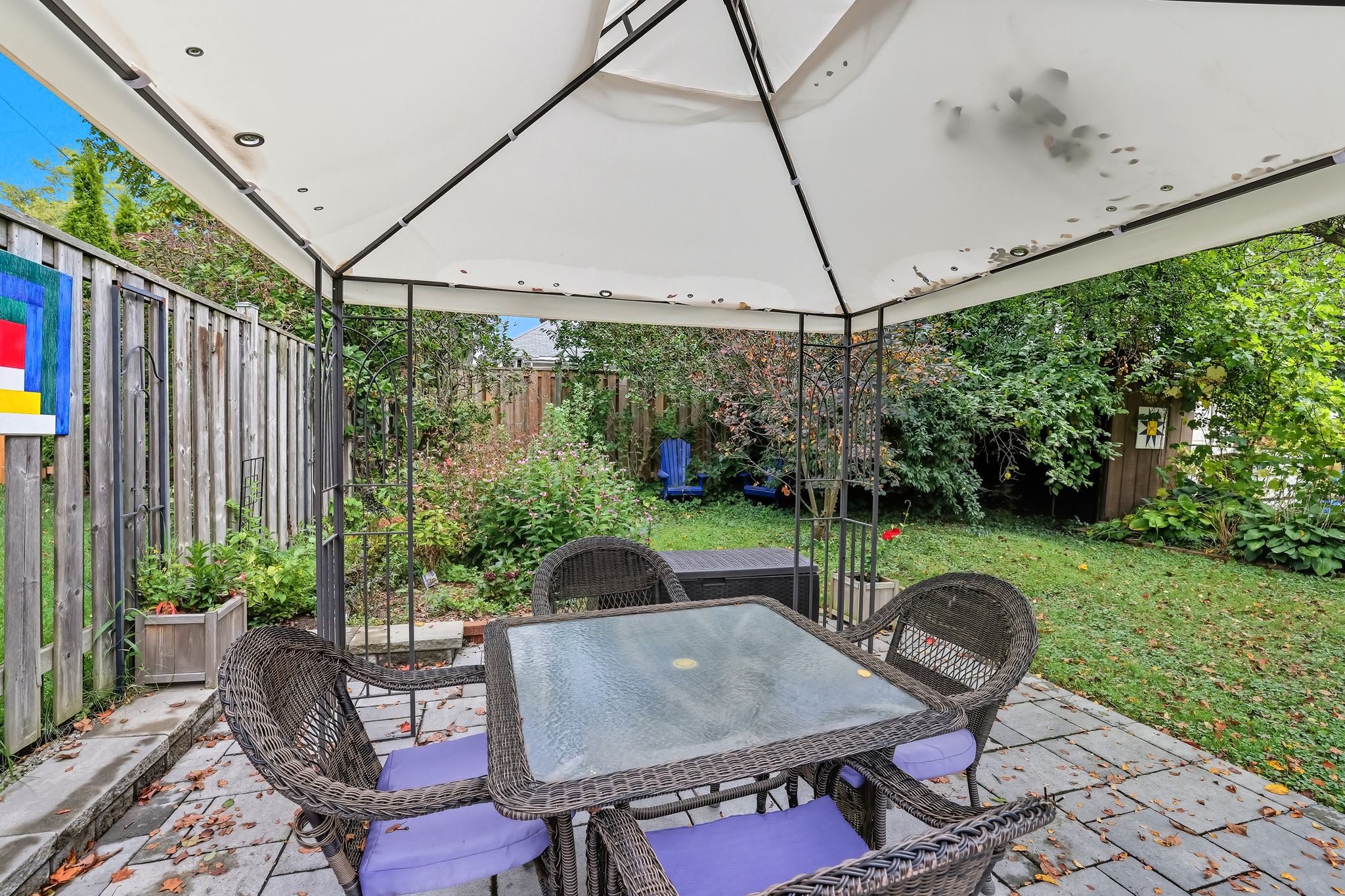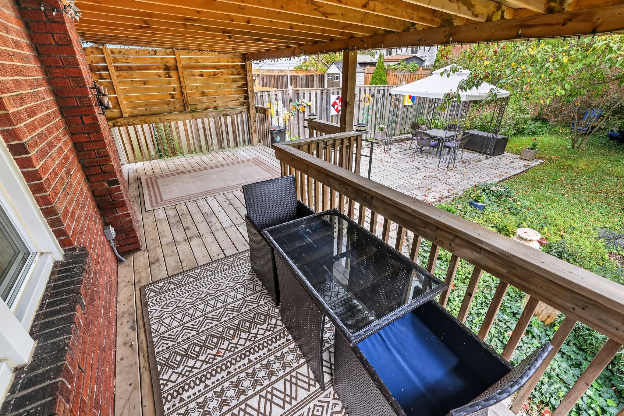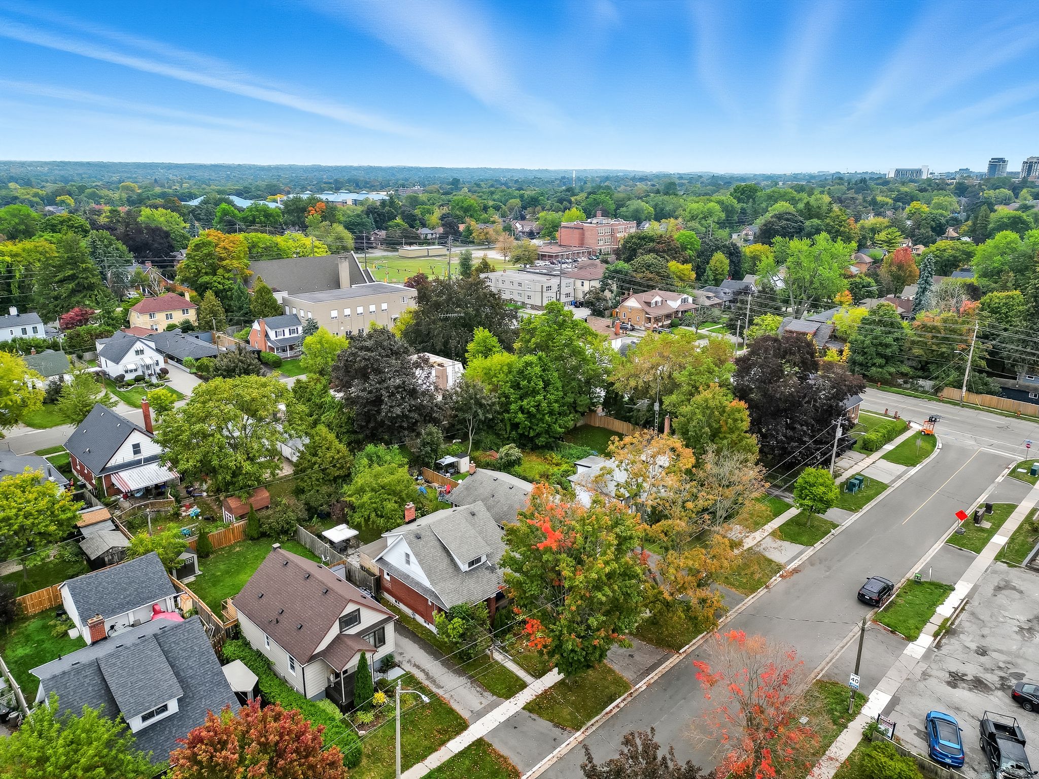Set on a quiet, tree‑lined street, this brick home welcomes you with a tidy front garden, a stone walkway, & a large, sheltered front deck, perfect for morning coffee under the mature maples. From this elevated perch, you’ll enjoy a friendly, look‑out‑for‑each‑other community, with sidewalks that make it a genuinely good walking neighbourhood. In a great school district & surrounded by well‑kept homes, the setting feels calm, connected, & inviting from the moment you arrive. The main floor blends charm & function with a partial open-concept layout that’s perfect for entertaining. A bright Living Room with large windows & timeless trim flows to the elegant Dining Room, highlighted by a full built-in china cabinet. At the back, the updated gourmet Kitchen shines with high-end ‘23 appliances, quartz countertops, solid-wood cabinets, subway-tile backsplash, pot lights, & updated tile flooring, plus a convenient walkout to the covered deck—so cocktails can move effortlessly from prep to patio. Upstairs hosts 3 bright bedrooms & a full 4-pc bath, all with warm wood-style floors & generous windows. The bathroom blends cottage charm with modern updates: a Bathfitter tub/shower combo, fresh Moen fixtures & sink (‘23), & updated tile flooring (‘15). The versatile 3rd bedroom is a standout—complete with a built-in desk niche & a fun ladder leading to a cozy loft for reading, play, or extra storage. Thoughtful closets & shelving keep everything organized, making this level equal parts stylish & practical. Out back, a large, sheltered deck off the kitchen steps down to a stone patio & gazebo, wrapped by perennial beds, a flowering crabapple, & mature greenery—your own secret garden. The fully fenced yard is perfect for pets & play, with the patio & all gardens professionally installed by Michal Durham Landscaping. Practical updates elevate the exterior, too: gutter guards ‘25, all windows replaced in the early 2000s, plus both exterior doors updated in ‘24. Just move in & enjoy.