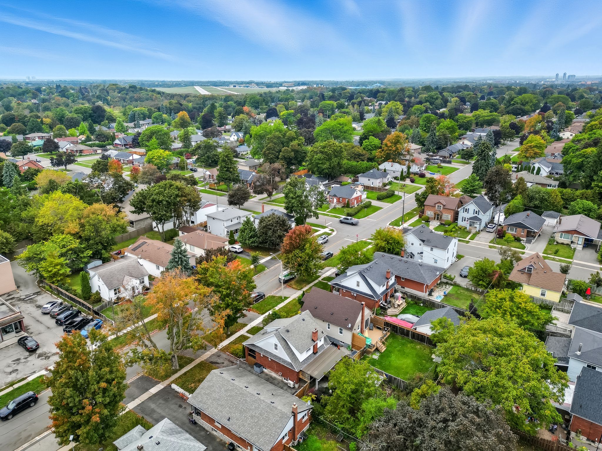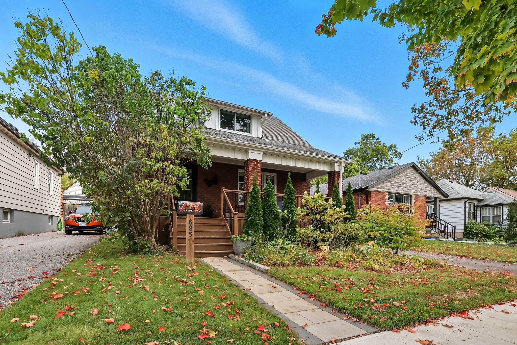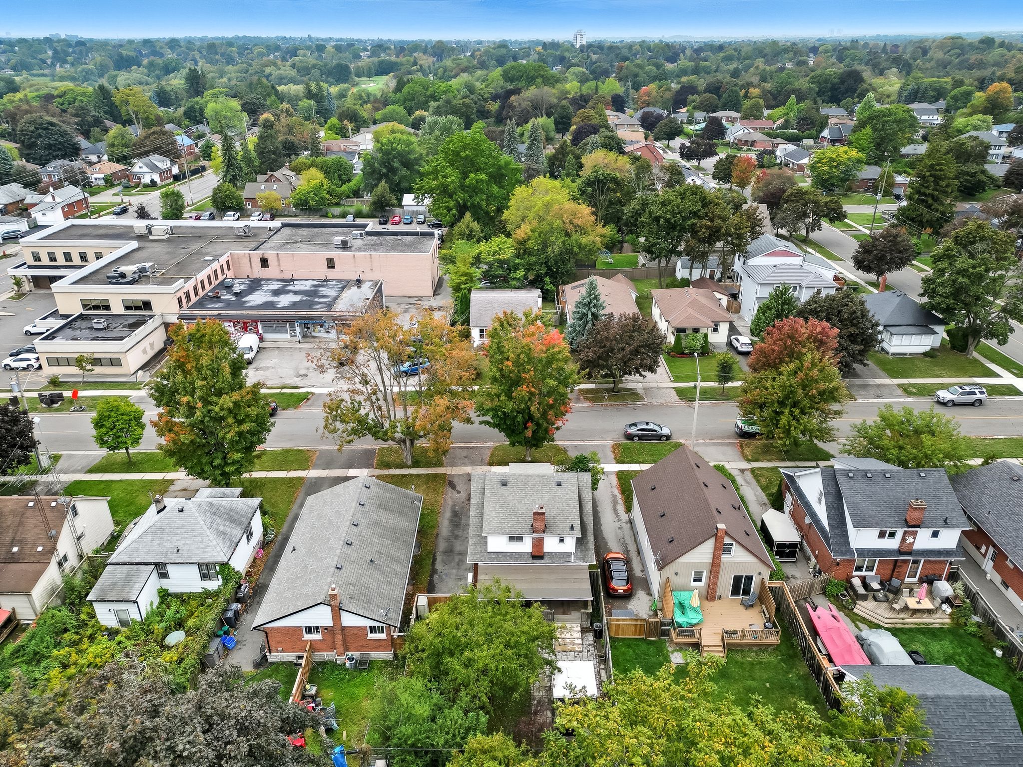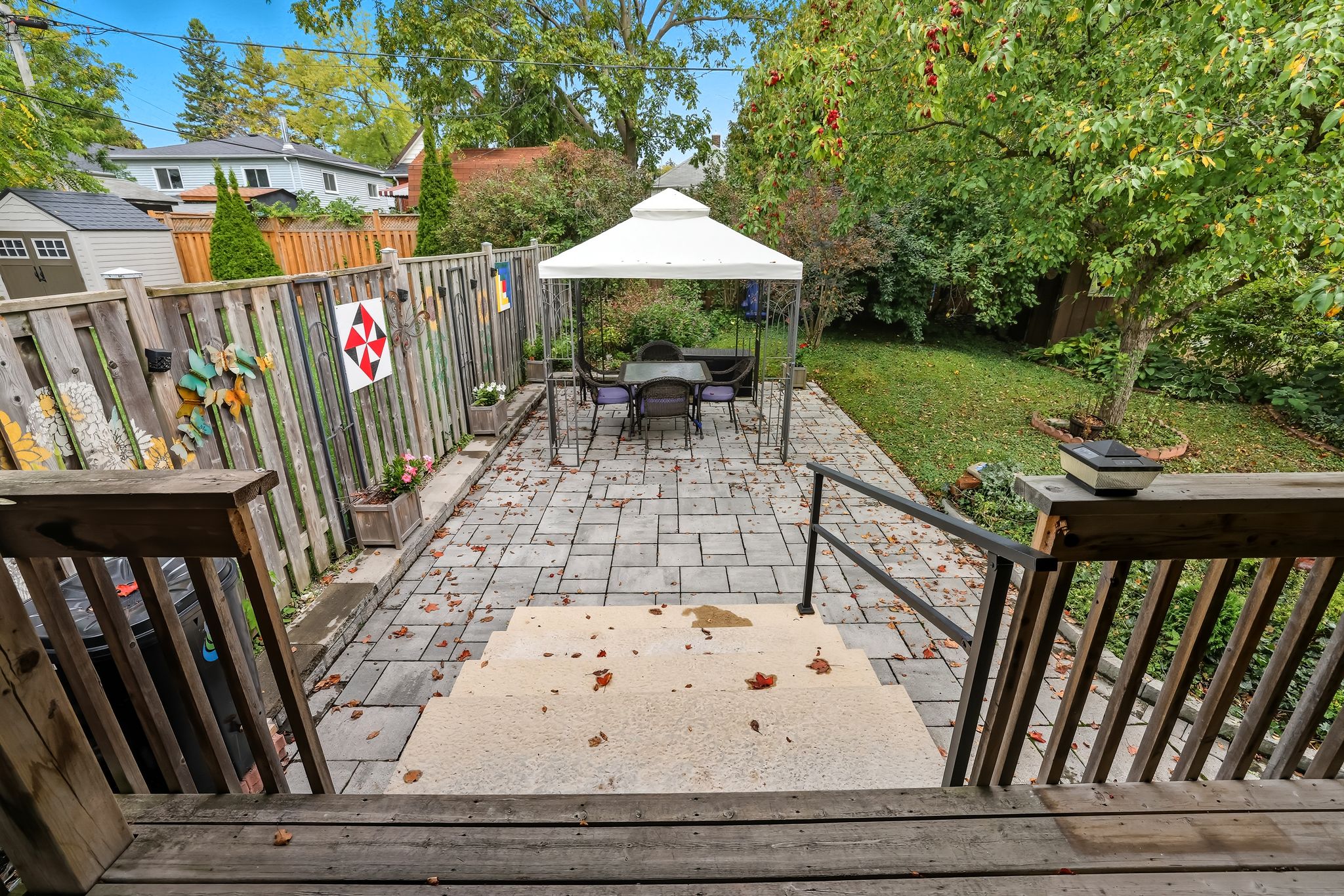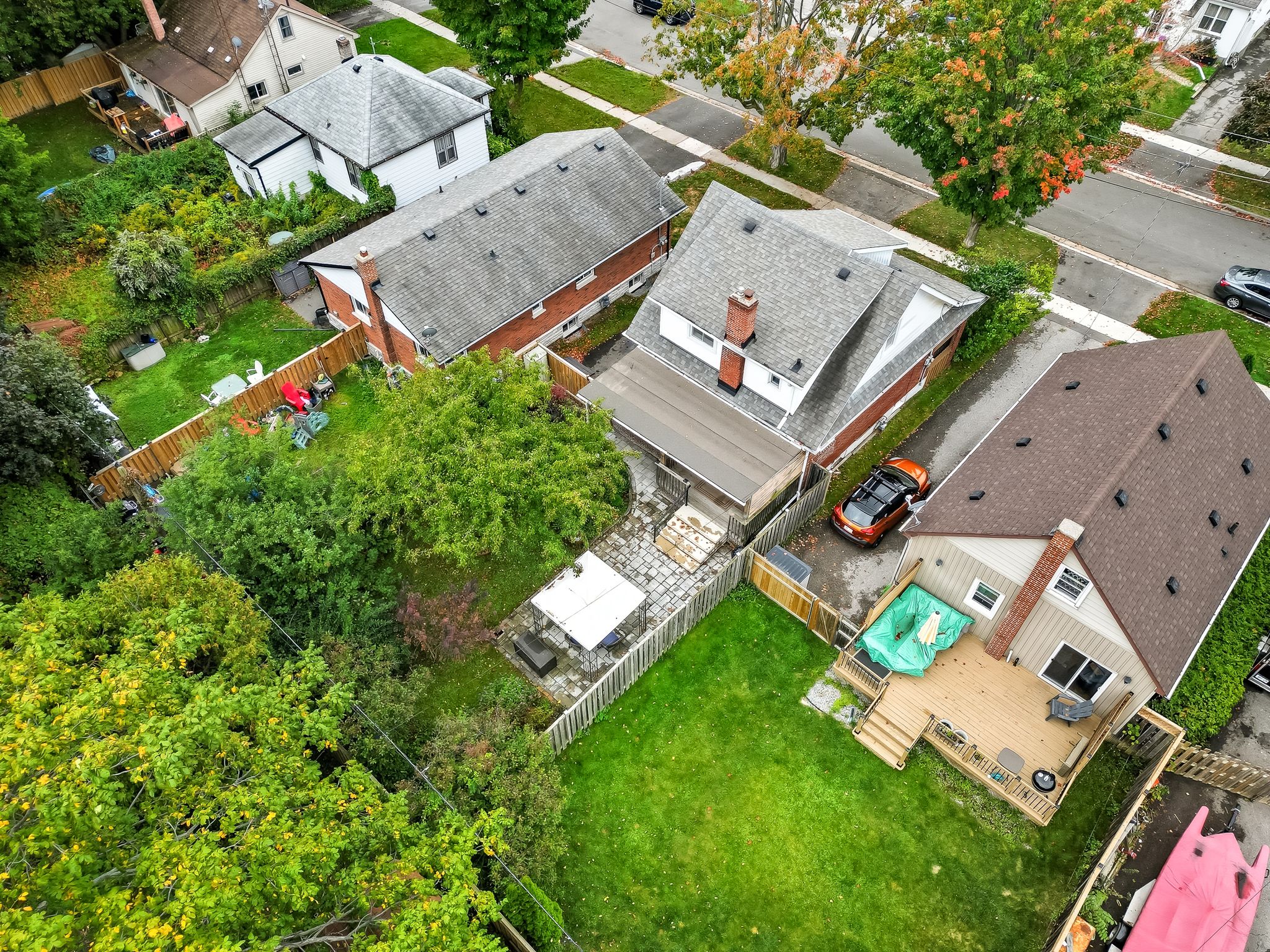Set on a quiet, tree‑lined street, this brick home welcomes you with a tidy front garden, a stone walkway, & a large, sheltered front deck, perfect for morning coffee under the mature maples. From this elevated perch, you’ll enjoy a friendly, look‑out‑for‑each‑other community, with sidewalks that make it a genuinely good walking neighbourhood. In a great school district & surrounded by well‑kept homes, the setting feels calm, connected, & inviting from the moment you arrive. The main floor blends charm & function with a partial open-concept layout that’s perfect for entertaining. A bright Living Room with large windows & timeless trim flows to the elegant Dining Room, highlighted by a full built-in china cabinet. At the back, the updated gourmet Kitchen shines with high-end ‘23 appliances, quartz countertops, solid-wood cabinets, subway-tile backsplash, pot lights, & updated tile flooring, plus a convenient walkout to the covered deck—so cocktails can move effortlessly from prep to patio. Upstairs hosts 3 bright bedrooms & a full 4-pc bath, all with warm wood-style floors & generous windows. The bathroom blends cottage charm with modern updates: a Bathfitter tub/shower combo, fresh Moen fixtures & sink (‘23), & updated tile flooring (‘15). The versatile 3rd bedroom is a standout—complete with a built-in desk niche & a fun ladder leading to a cozy loft for reading, play, or extra storage. Thoughtful closets & shelving keep everything organized, making this level equal parts stylish & practical. Out back, a large, sheltered deck off the kitchen steps down to a stone patio & gazebo, wrapped by perennial beds, a flowering crabapple, & mature greenery—your own secret garden. The fully fenced yard is perfect for pets & play, with the patio & all gardens professionally installed by Michal Durham Landscaping. Practical updates elevate the exterior, too: gutter guards ‘25, all windows replaced in the early 2000s, plus both exterior doors updated in ‘24. Just move in & enjoy.