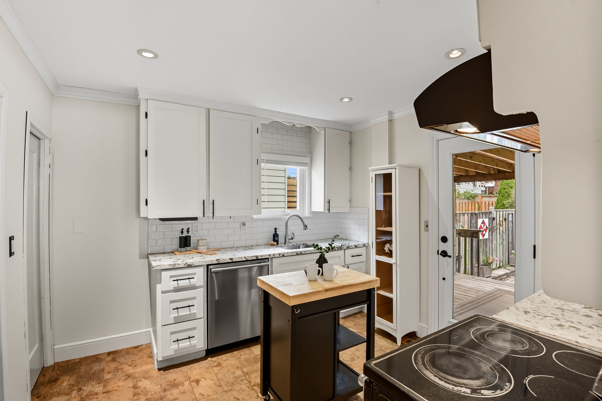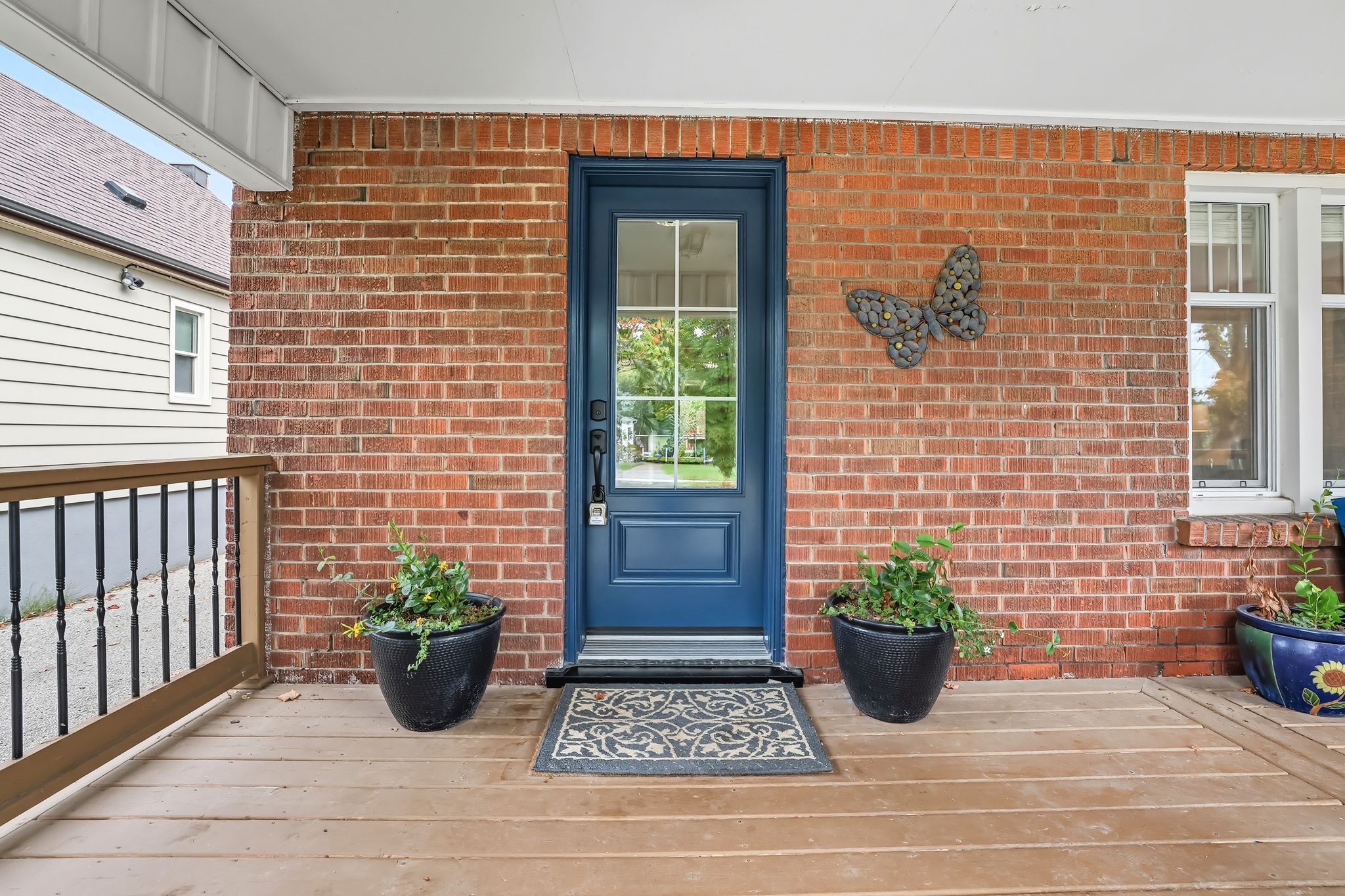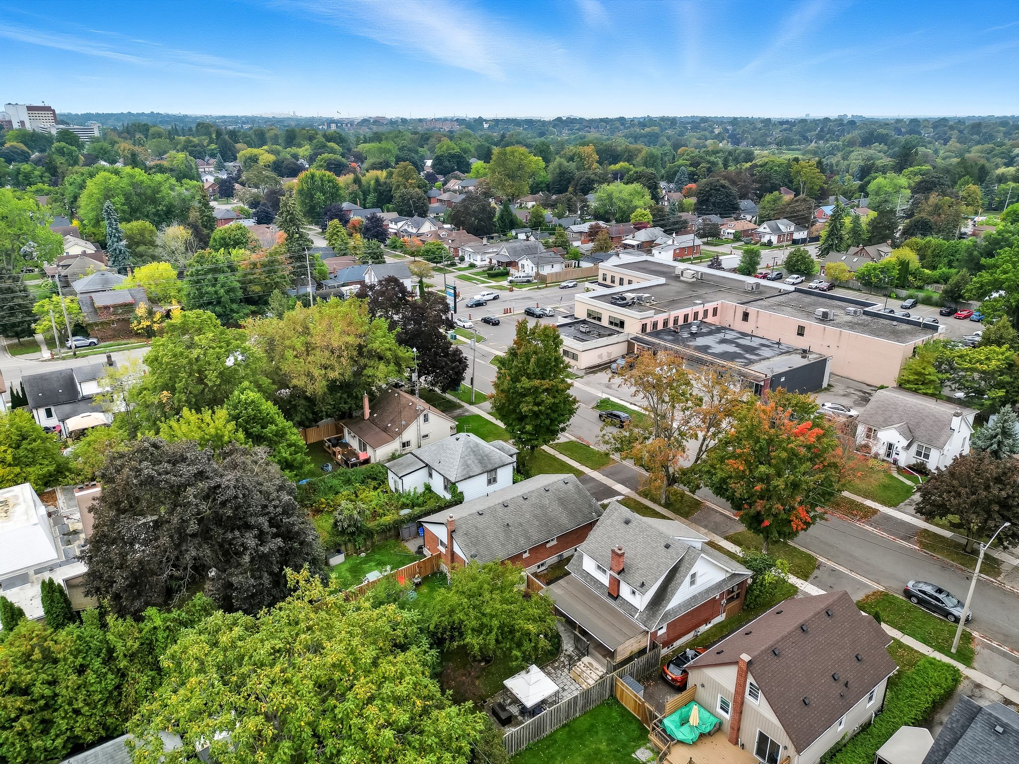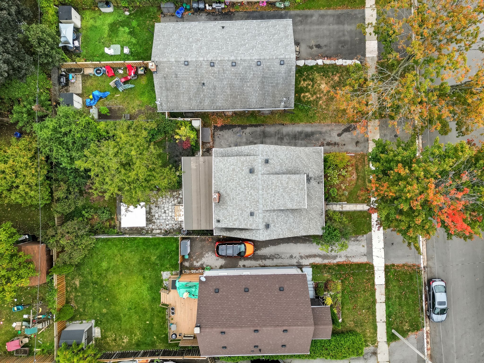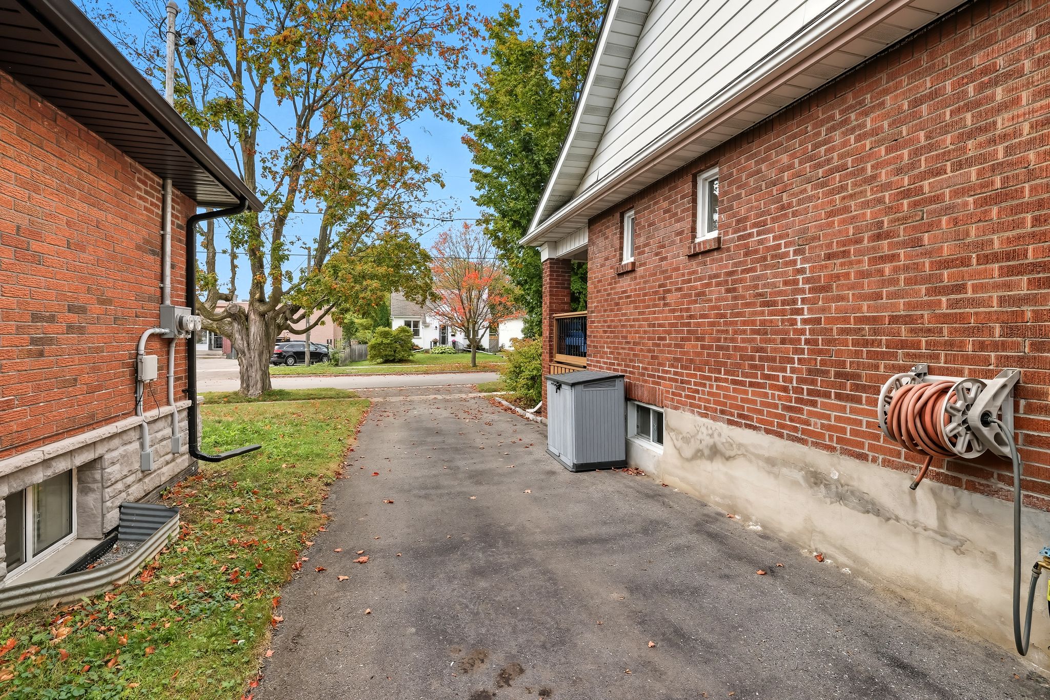 Set on a quiet, tree‑lined street, this brick home welcomes you with a tidy front garden, a stone walkway, & a large, sheltered front deck, perfect for morning coffee under the mature maples. From this elevated perch, you’ll enjoy a friendly, look‑out‑for‑each‑other community, with sidewalks that make it a genuinely good walking neighbourhood. In a great school district & surrounded by well‑kept homes, the setting feels calm, connected, & inviting from the moment you arrive. The main floor blends charm & function with a partial open-concept layout that’s perfect for entertaining. A bright Living Room with large windows & timeless trim flows to the elegant Dining Room, highlighted by a full built-in china cabinet. At the back, the updated gourmet Kitchen shines with high-end ‘23 appliances, quartz countertops, solid-wood cabinets, subway-tile backsplash, pot lights, & updated tile flooring, plus a convenient walkout to the covered deck—so cocktails can move effortlessly from prep to patio. Upstairs hosts 3 bright bedrooms & a full 4-pc bath, all with warm wood-style floors & generous windows. The bathroom blends cottage charm with modern updates: a Bathfitter tub/shower combo, fresh Moen fixtures & sink (‘23), & updated tile flooring (‘15). The versatile 3rd bedroom is a standout—complete with a built-in desk niche & a fun ladder leading to a cozy loft for reading, play, or extra storage. Thoughtful closets & shelving keep everything organized, making this level equal parts stylish & practical. Out back, a large, sheltered deck off the kitchen steps down to a stone patio & gazebo, wrapped by perennial beds, a flowering crabapple, & mature greenery—your own secret garden. The fully fenced yard is perfect for pets & play, with the patio & all gardens professionally installed by Michal Durham Landscaping. Practical updates elevate the exterior, too: gutter guards ‘25, all windows replaced in the early 2000s, plus both exterior doors updated in ‘24. Just move in & enjoy.